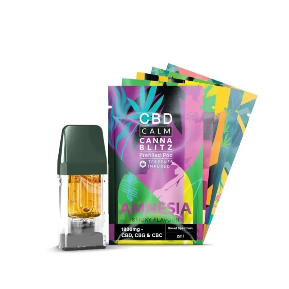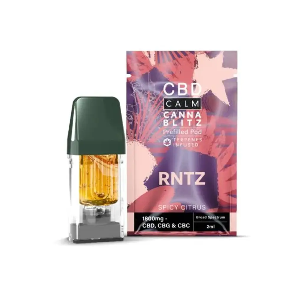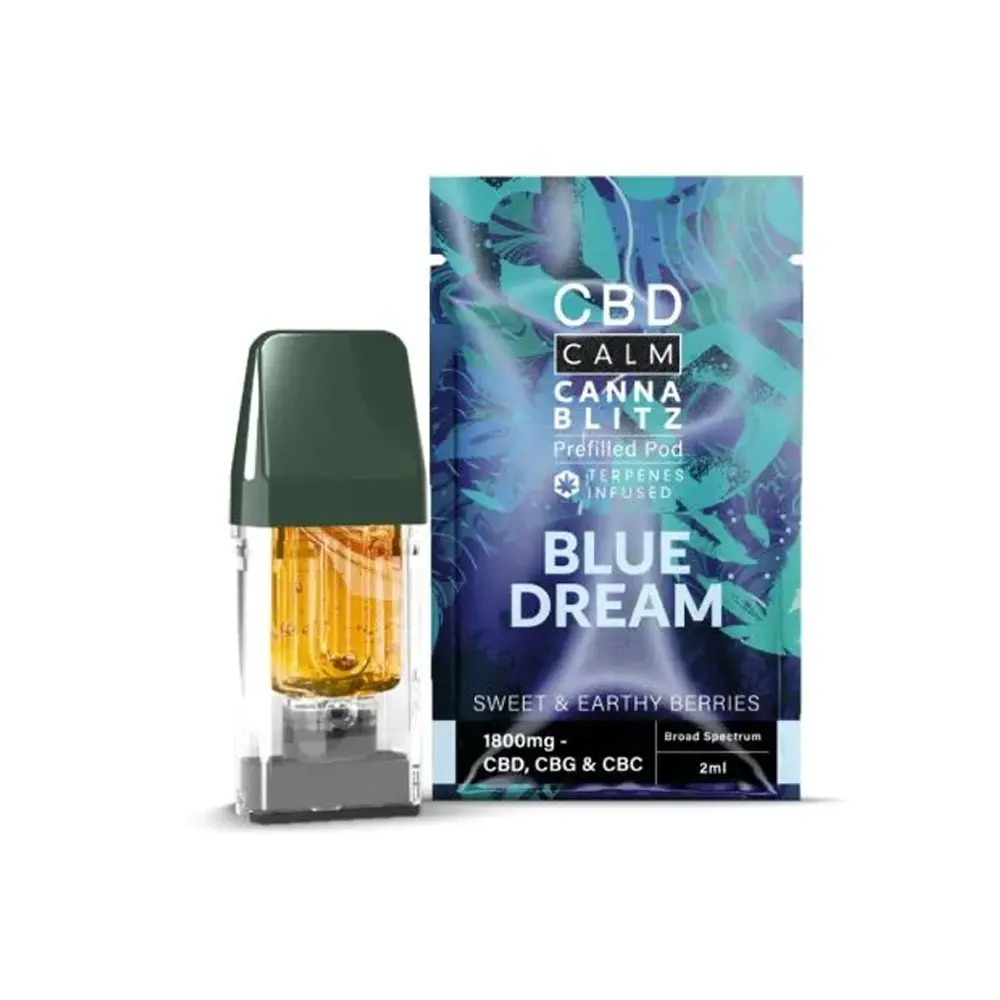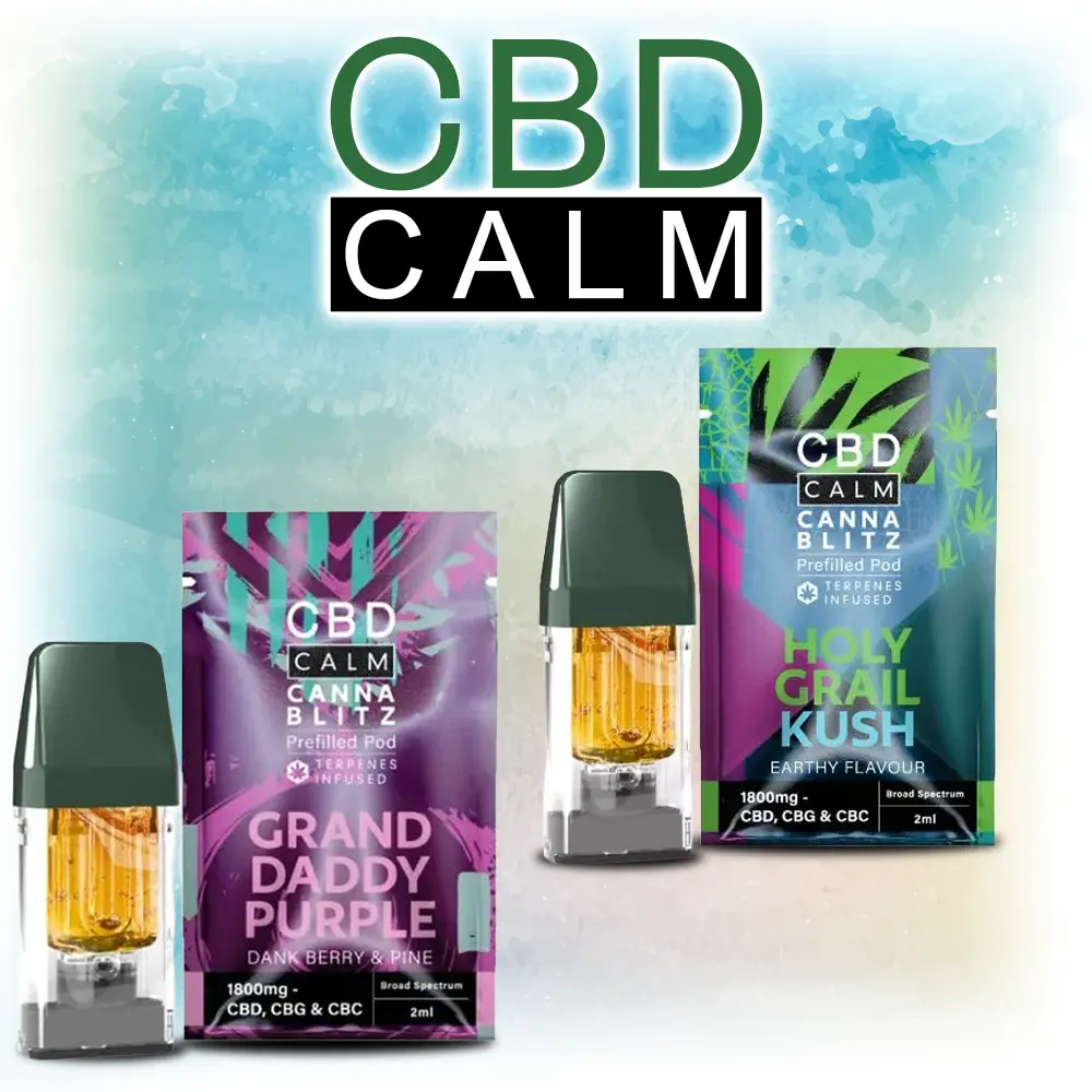 Available in a variety of terpene-inspired flavours, CBD Calm Cannablitz Prefilled Pods provide a flexible and reliable way to enjoy CBD in a portable and user-friendly format.