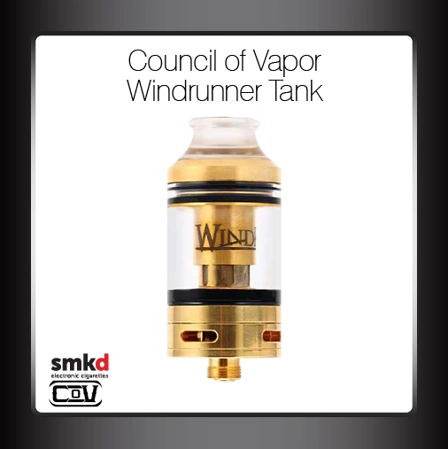 The airflow can be adjusted from both the top and the bottom. The Windrunner Tank uses Council of Vapour’s 0.2 ohm coil, which is designed to produce large clouds and a powerful flavour. This tank has a 2.5ml liquid capacity and comes with a 510 drip tip.