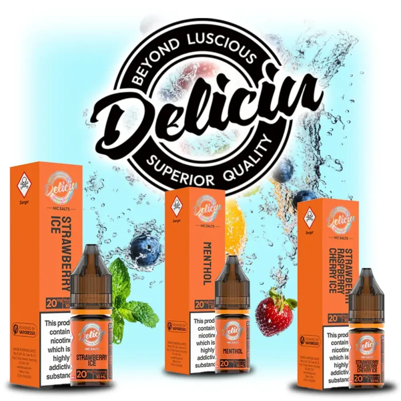 The Deliciu range includes more than twenty options such as Apple & Peach, Grape, Lemon Lime, Pink Lemonade, Watermelon Ice, Kiwi Passion Fruit Guava, Menthol, and many more.