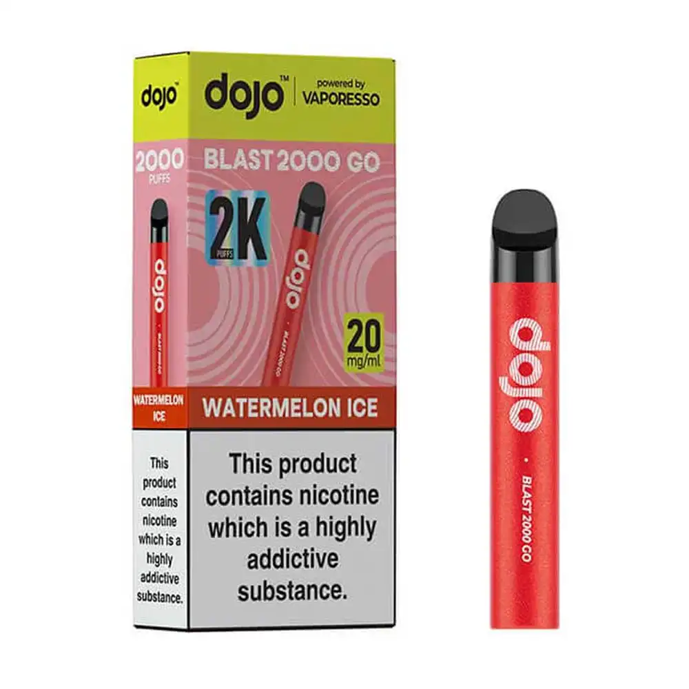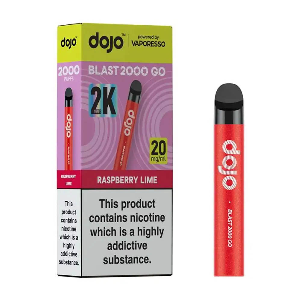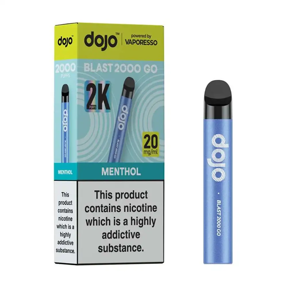The Dojo Blast 2000 Go is a sleek and easy-to-use pod vape kit built by Vaporesso. Designed to replace disposable vapes, it offers up to 2000 puffs from a single charge and pod set. It includes a 700mAh rechargeable battery, a 2ml prefilled pod, and a 2ml refill container filled with 20mg nic salt e-liquid for a smooth and satisfying MTL vape.