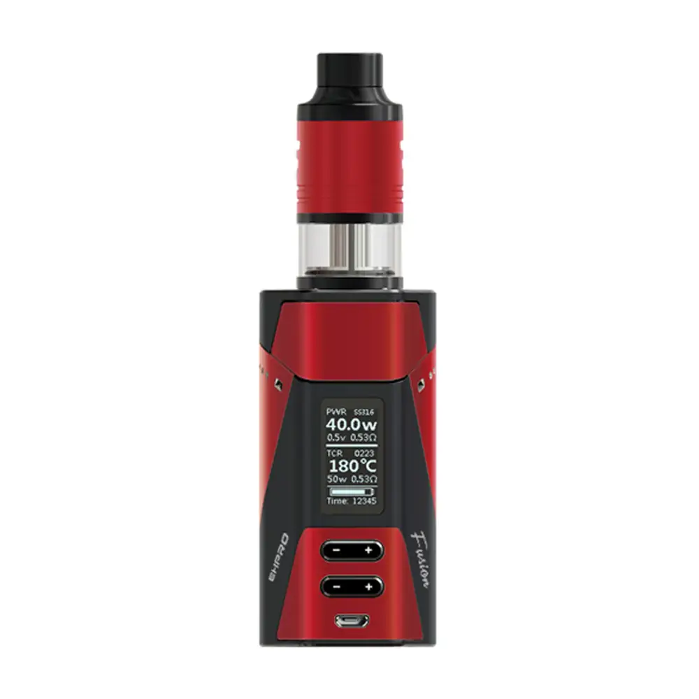 The Fusion Box Mod features a striking quadrilateral frame with contrasting side panels, intuitive OLED display, and dual firing buttons for each chipset. Built for dual 18650 batteries (not included), it supports up to 150W combined output or 100W per core independently. Temperature control with Ni200, Titanium, and Stainless Steel coils is fully supported, along with TCR adjustments for precise control.