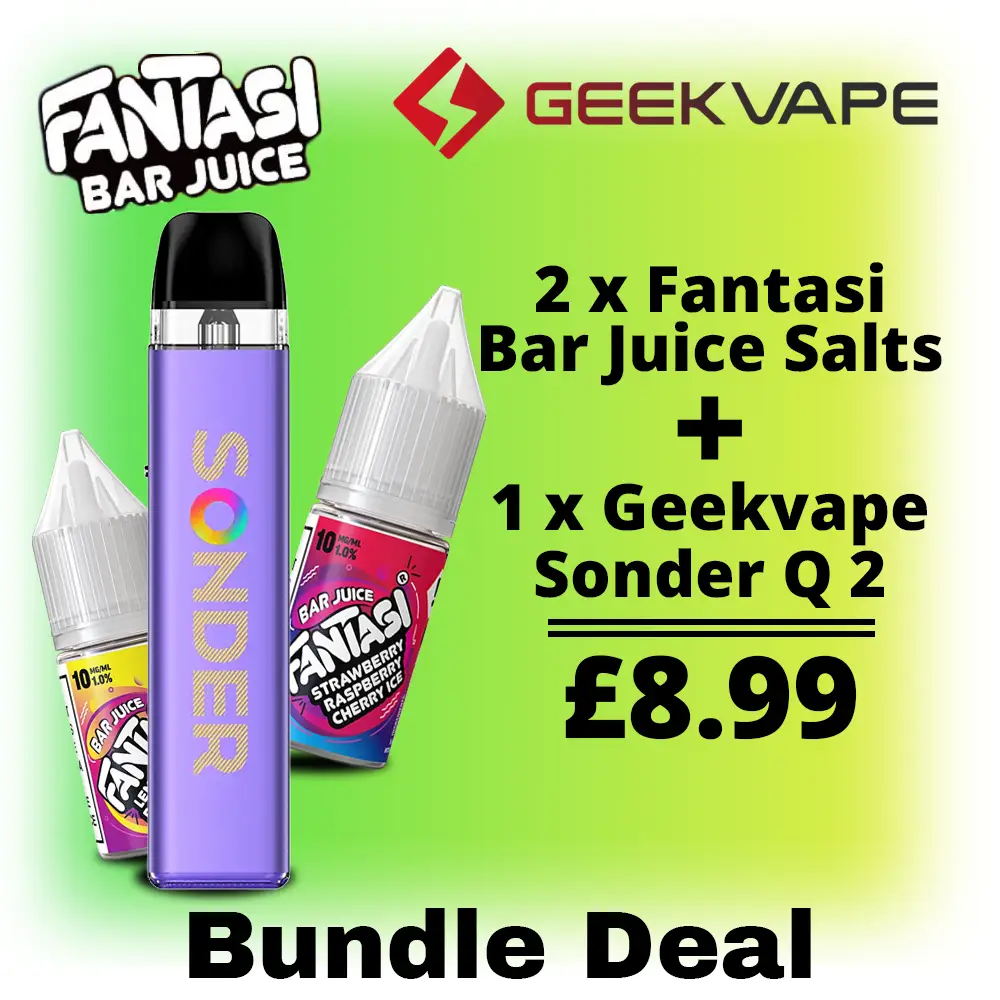 Description Of The Geekvape Sonder Q2 & Fantasi Bar Juice Salts Starter Kit Bundle