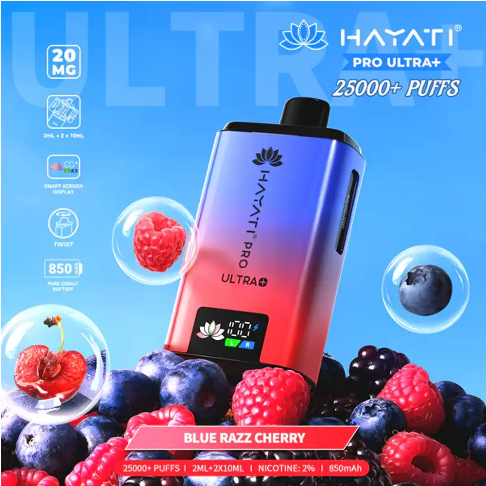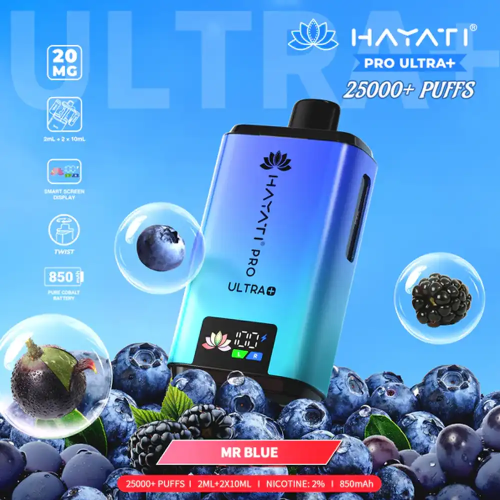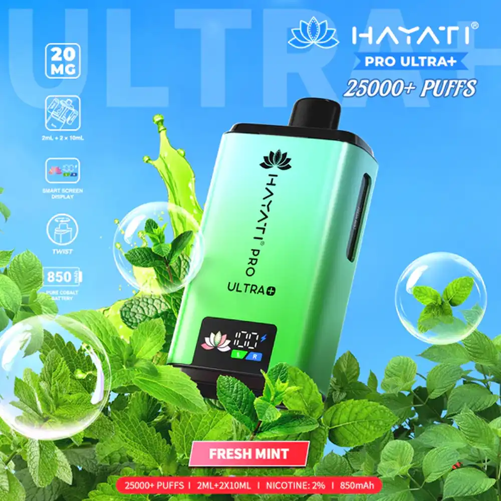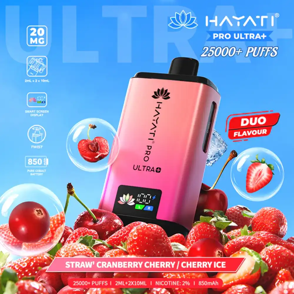 The Hayati Pro Ultra + 25K is a premium prefilled pod system designed for maximum convenience, long-lasting performance, and incredible flavour. Powered by a robust 1250mAh turbo-charging battery, this compact device delivers up to 25,000 puffs per kit, making it one of the longest-lasting options in the prefilled vape market. A smart display screen and intelligent chipset provide real-time usage data, while the USB Type-C port ensures fast recharging with minimal downtime.