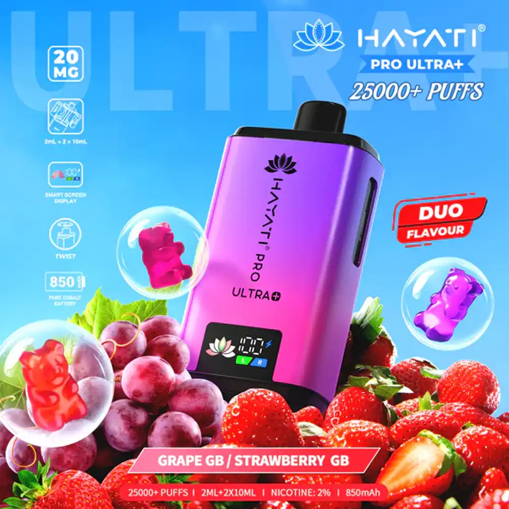 Each kit comes with a 2ml prefilled pod containing advanced dual mesh coil technology and two 10ml auto-refilling tanks, ensuring consistent flavour and vapour output. The hygienic mouthpiece cap keeps your device clean, while the easy swappable pod system allows you to explore a wide range of fruity and sweet flavour blends without hassle. Perfect for mouth-to-lung (MTL) vaping, the Hayati Pro Ultra + offers a smooth nicotine delivery in a 20mg nic salt format, designed for both new and experienced vapers alike.
