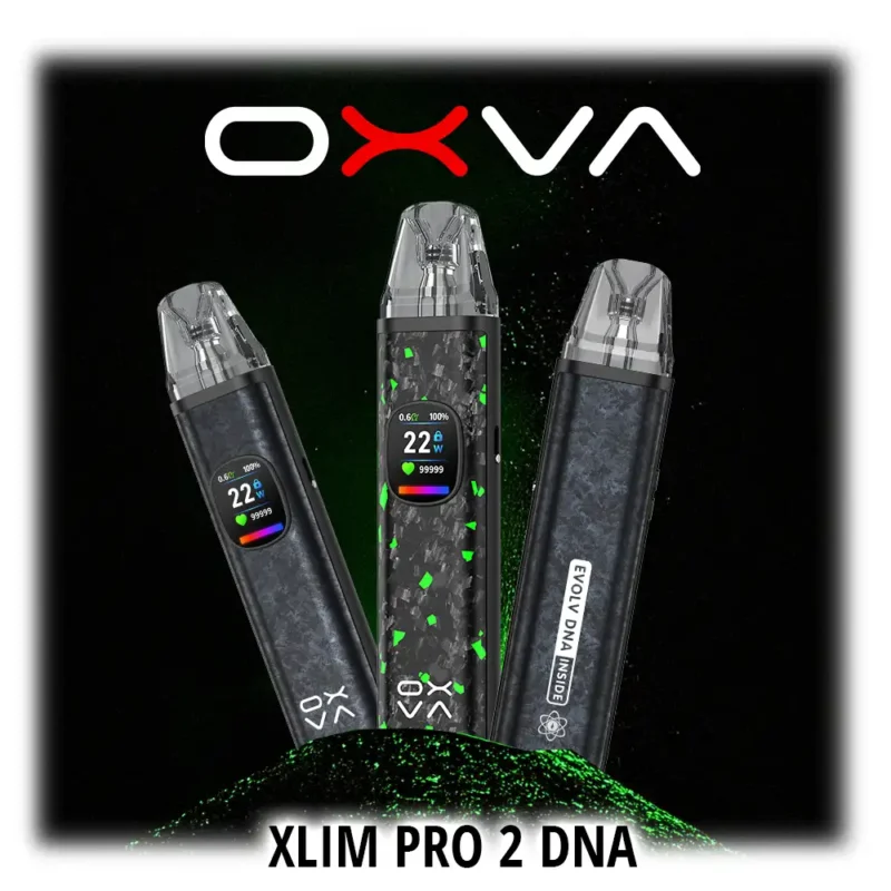 The Xlim Pro 2 DNA is a high-end refillable pod vape kit by OXVA, featuring the Evolv DNA chipset for advanced control, temperature regulation, and Replay Mode.