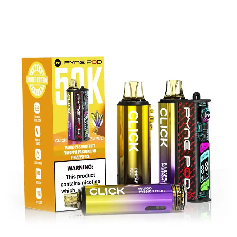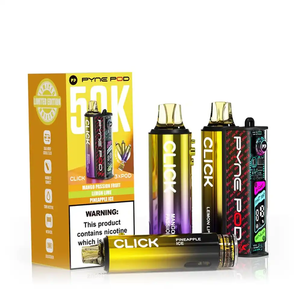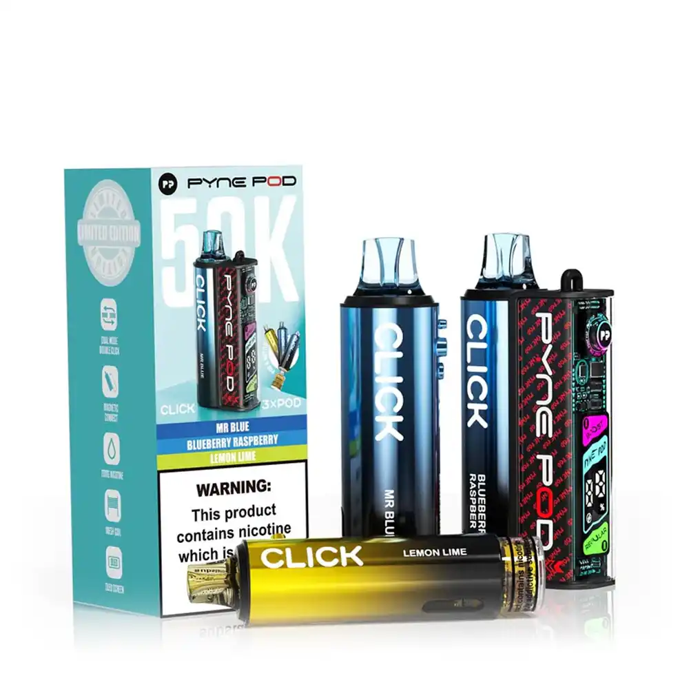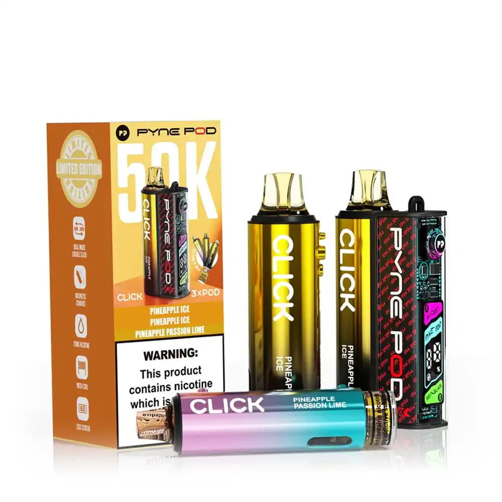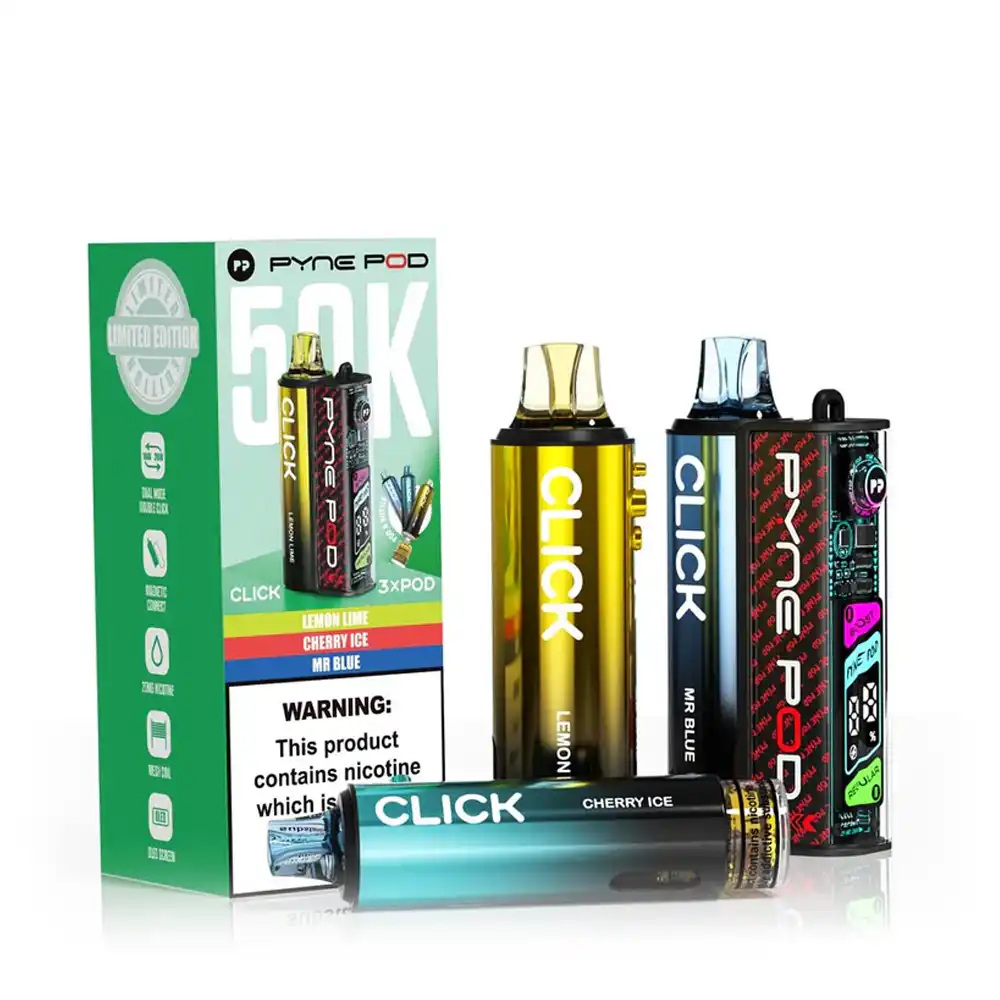 Take your vape sessions further with the Pyne Pod Click 50K—designed for vapers who want bold flavour, huge puff capacity, and zero-fuss refilling. With up to 50,000 puffs per device, the Click 50K is built for endurance and satisfaction. Whether you’re upgrading from disposables or just want longer-lasting performance, this is the kit to beat.
