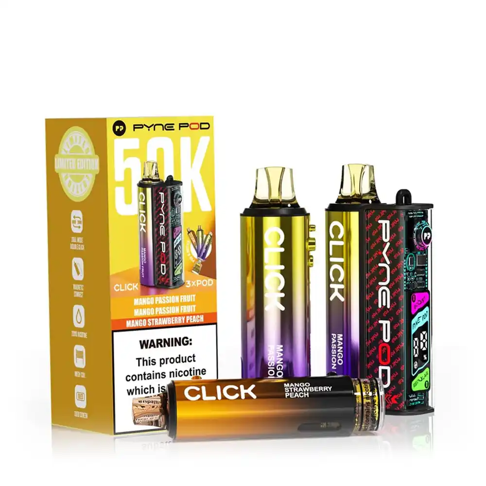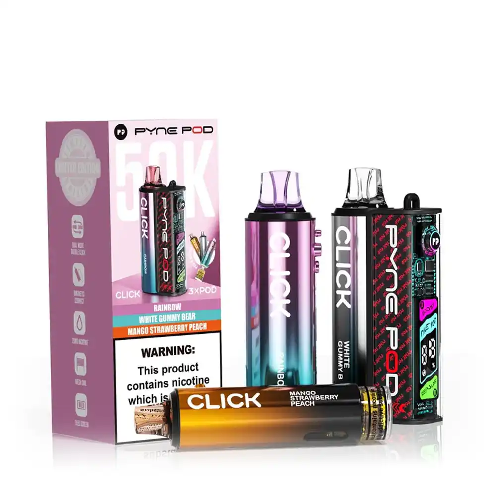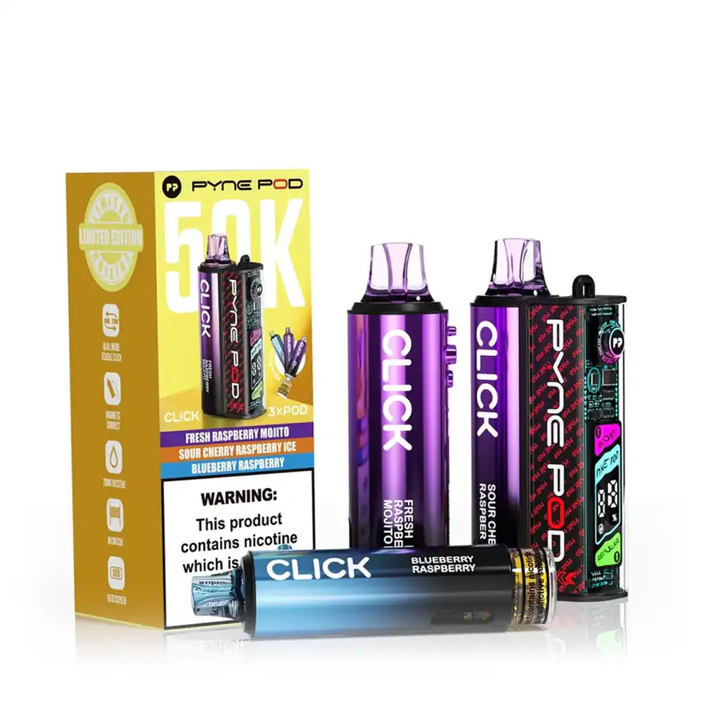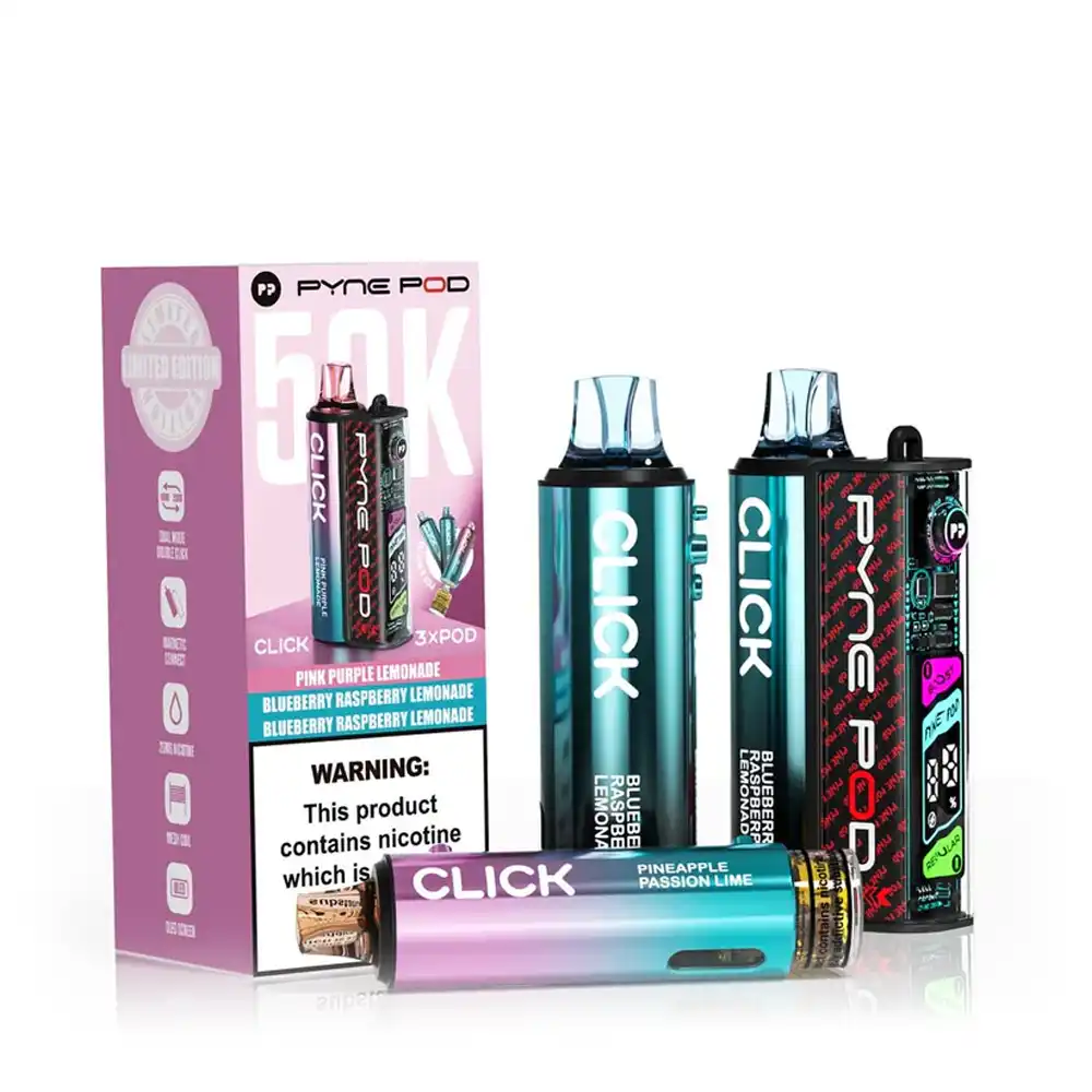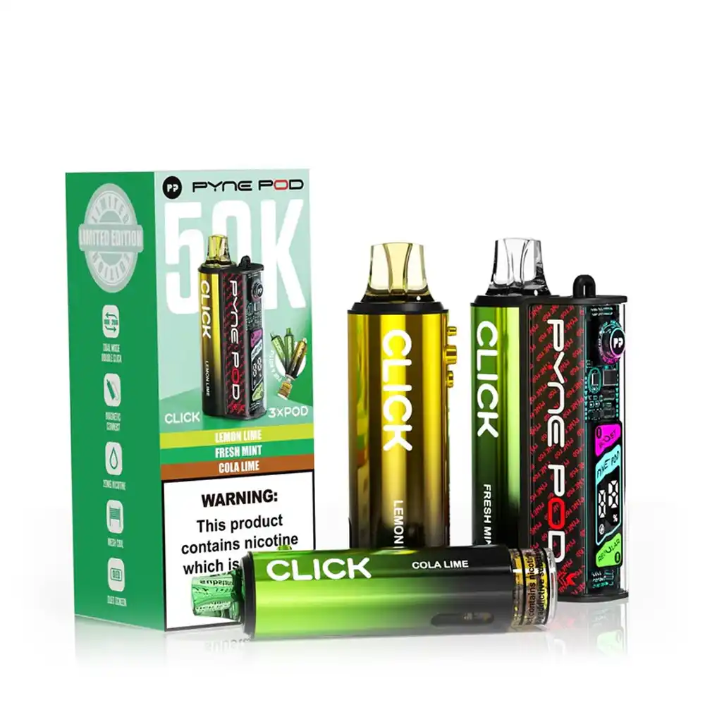 Take your vape sessions further with the Pyne Pod Click 50K—designed for vapers who want bold flavour, huge puff capacity, and zero-fuss refilling. With up to 50,000 puffs per device, the Click 50K is built for endurance and satisfaction. Whether you’re upgrading from disposables or just want longer-lasting performance, this is the kit to beat.